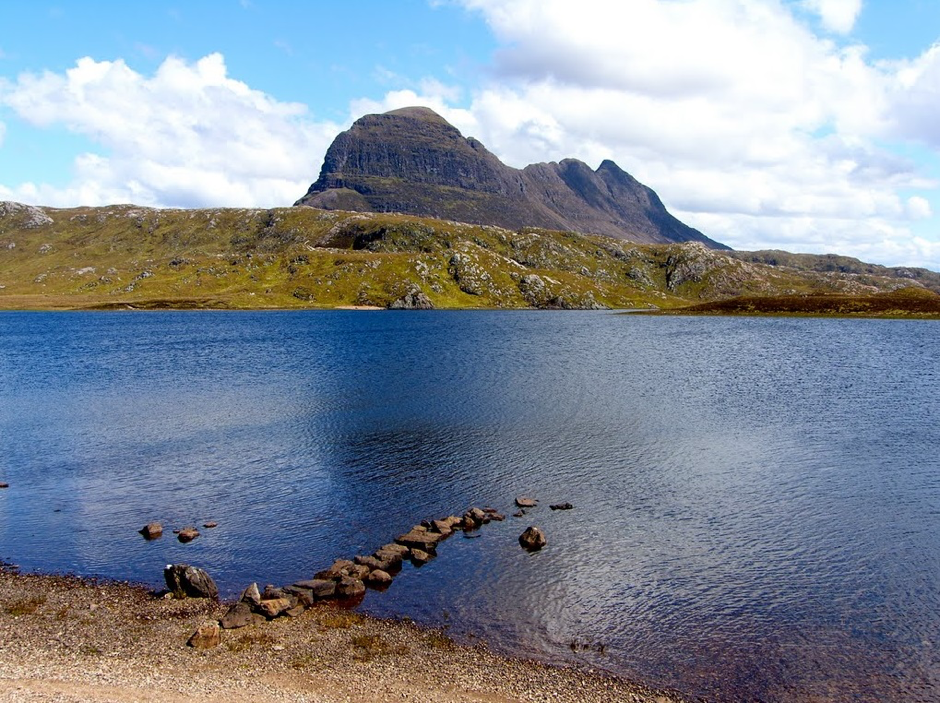 I’m greeted by the loch glistening in the light as the sun has parted the clouds; the reeds on the near shore bending in the wind; relief, the breeze up here is too strong for the midges to cause havoc.