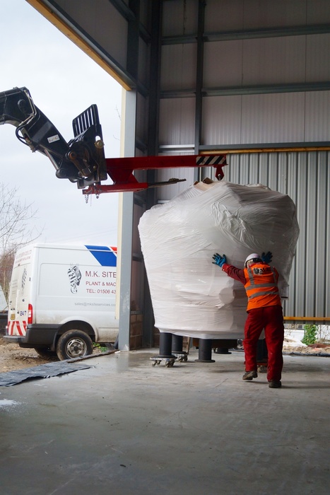 “You’re not a distiller till you’ve got the copper stills! Unfortunately, they can’t be unwrapped until the next pieces of equipment arrive, so they’ll sit wrapped for a while. It’s a bit like having an early Christmas present!“