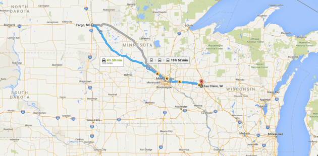 My brother currently lives in Fargo, North Dakota; yup the one that features in the film and TV series. Just south east of Sid and his family is a town called Eau Claire; you travel through Minnesota and on to Wisconsin and you wake up to those vast open spaces. Eau Claire follows the Chippewa River as it meanders from the Great Lakes down to the Mississippi River in the south.