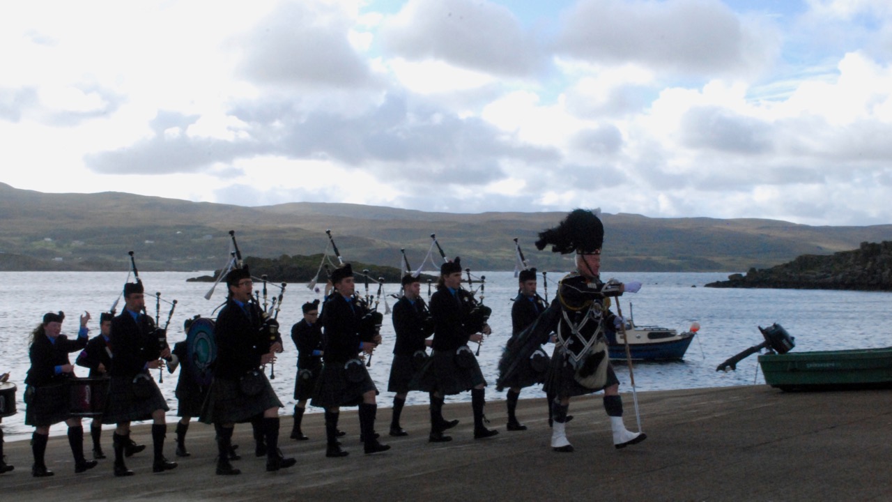 In the afternoon, all guests congregated on the pier to welcome the Isle of Skye pipe band off the ferry, who then led the way back to the distillery for the cutting of the cord ceremony.